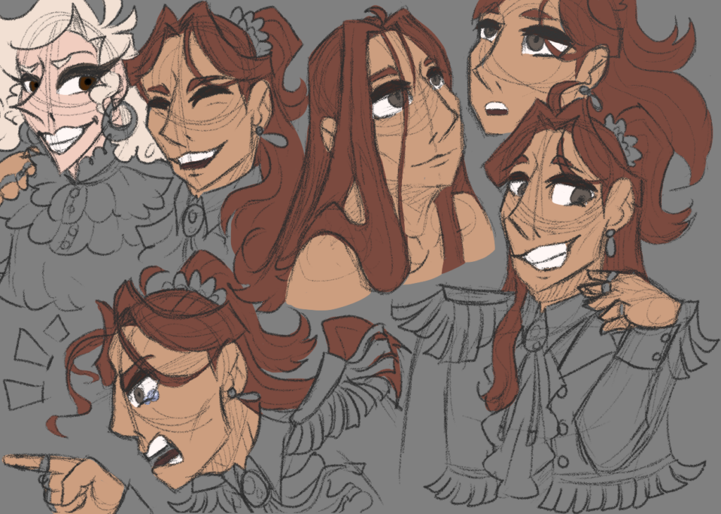 Character studies, both colored and uncolored: